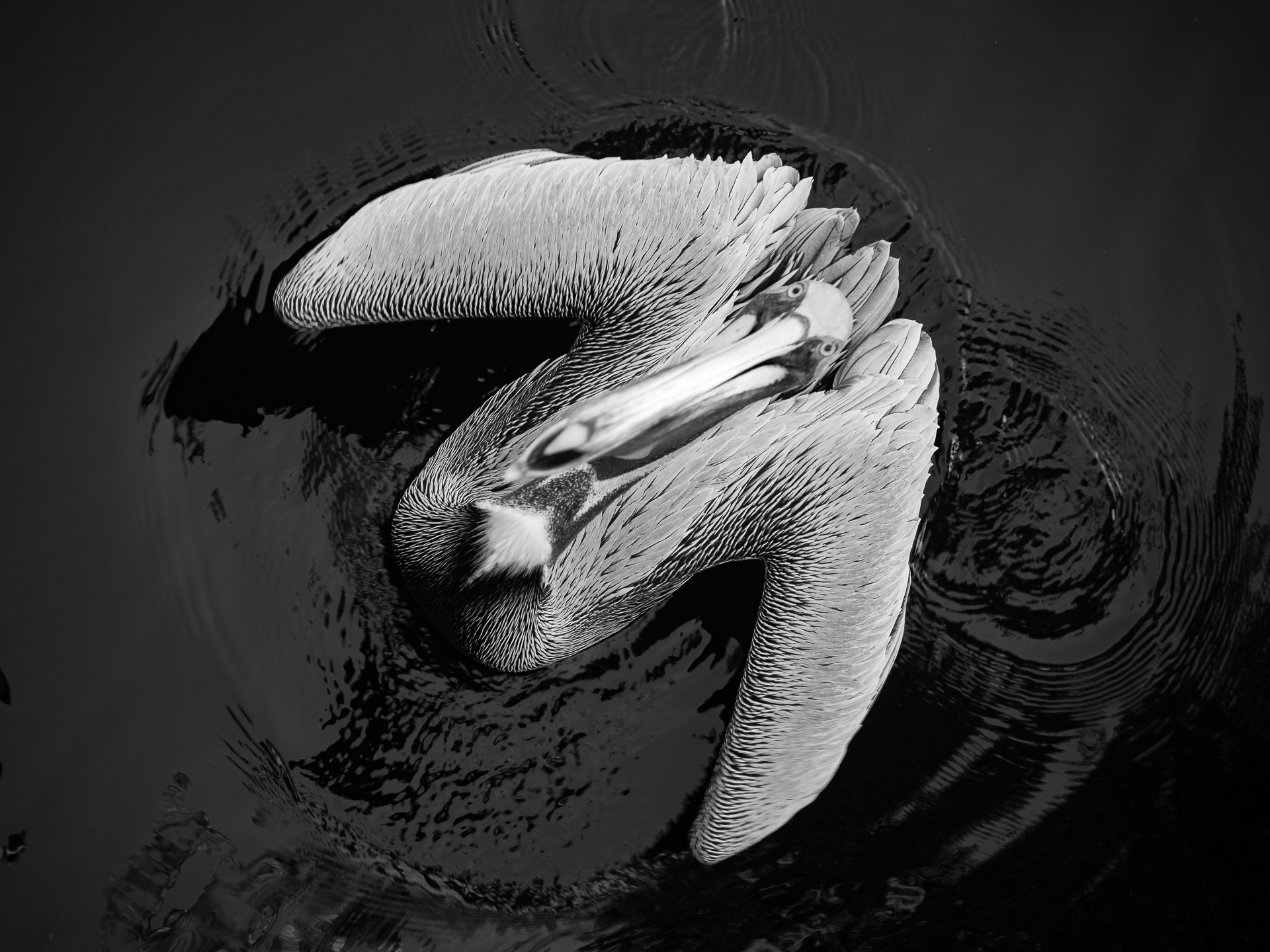 Within moments of walking on to my dock, this afternoon a trio of brown pelicans crash landed into the water at my feet. They do this whenever they see me, assuming I’m there cleaning fish. World-class beggars for sure. But no fish scraps today. I was there to, hopefully, photograph these prehistoric looking guys. Whenever I would lean out, camera at the ready, they would flutter their wings and extend their bill in hopes of catching a treat, like a baseball fan hoping to catch a foul ball. Finally, the threesome posed, heads turned just so, for their portrait I call “Three Part Harmony.”